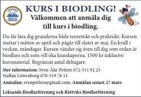 I år kör vi en ny grundkurs i biodling. Välkommen att anmäla dig till Sven-Åke eller Staffan. Sista anmälningsdag 27 mars. 🐝